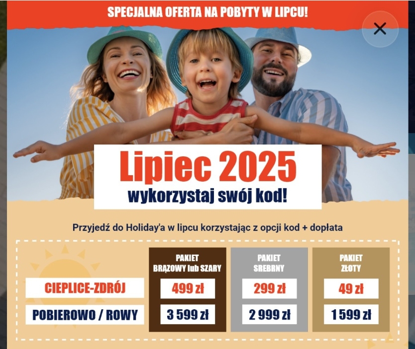 Dostaliśmy nową promkę z Holidaya. Promocja dotyczy Cieplic w LIPCU . Można wykorzystać kody zakupione już wcześniej lub zamówić nowe.